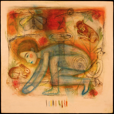 The Garden, 2020, 12x12 in., Graphite & oil on paper on panel