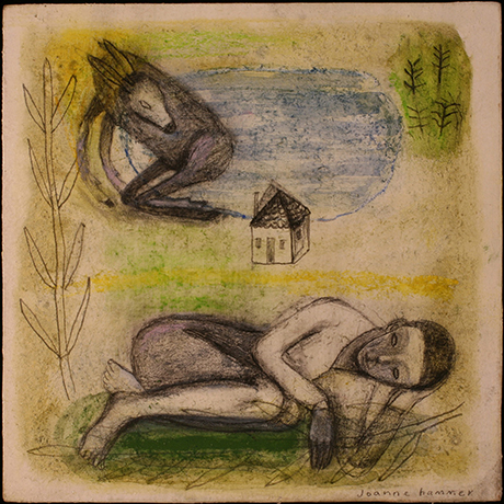 Dreamer, 2014 5x5 in. Gouache, graphite & oil on paper on panel