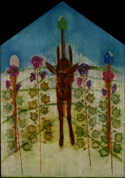 Hollyhocks, 2007, 40" x 28", Oil on paper on pane