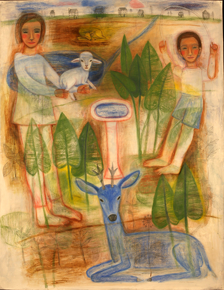 The Rescuer, 2015, 46x35 1/2 in., Graphite & oil on pap\