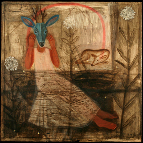 Deer Mask, 2010, 20" x 20", Ink & oil on paper on panel