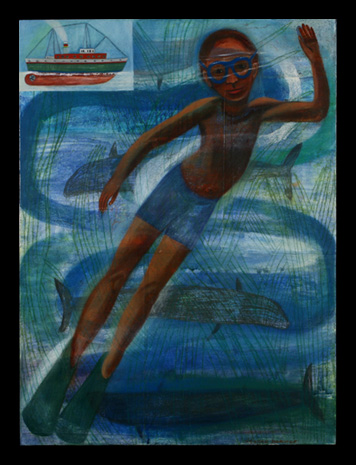 The Swimmer, 2007, 20" x 15", Oil on paper on panel
